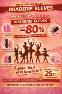 via la plateforme Arte Danse Shop ou lors d’une vente organisée directement au sein de votre école.